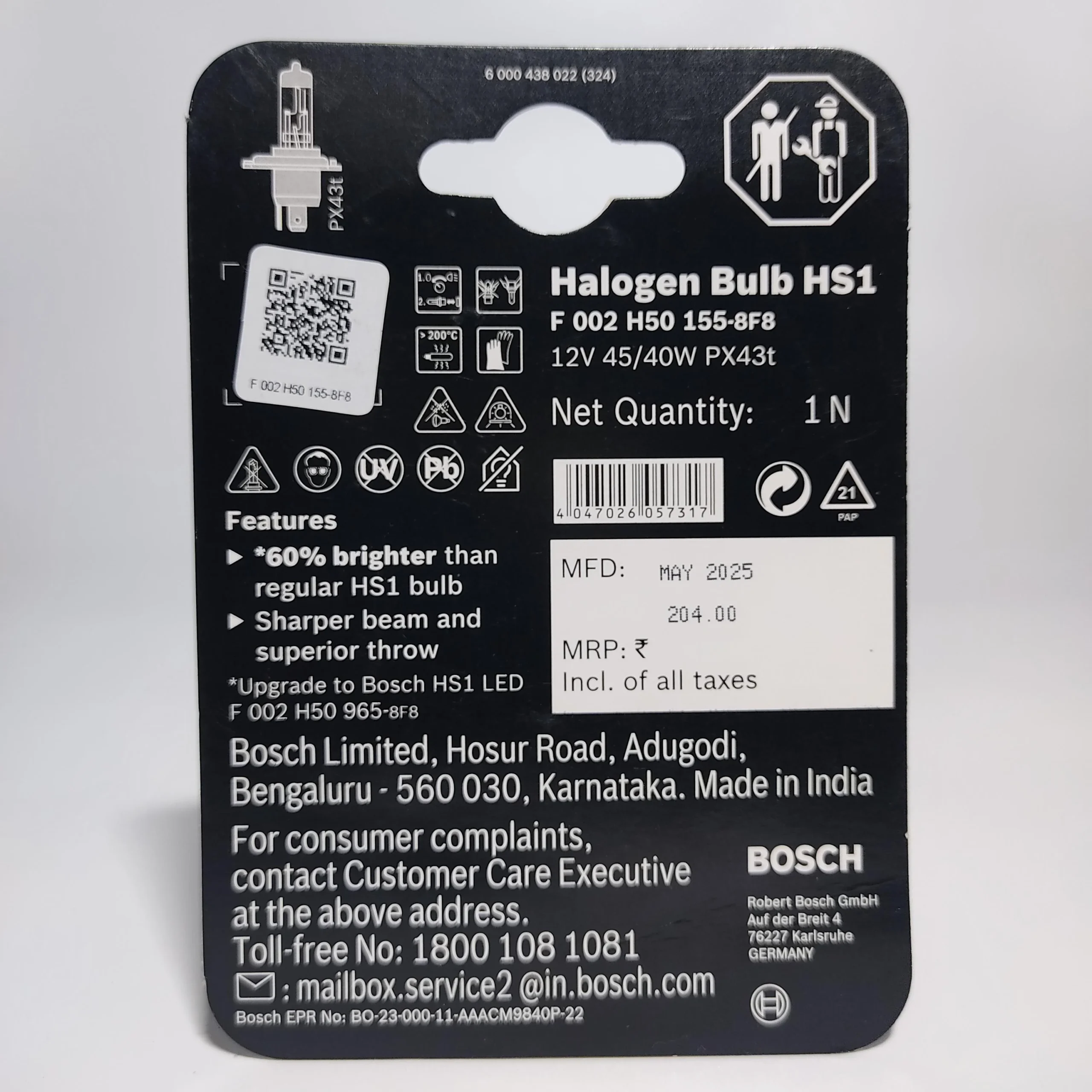 For bike owners seeking a reliable, bright, and durable lighting solution, the Bosch HS1 bulb 12v 45/40w offers a perfect balance of performance and longevity. Backed by Bosch’s century-old expertise, this halogen bulb helps ensure safer rides, better visibility, and peace of mind on every journey. Upgrade your bike’s headlight today with a Bosch bulb and experience the difference. If you want to improve your motorcycle lighting with a trusted brand, consider the Bosch HS1 12V 45/40W halogen bulb — a smart choice for individual riders worldwide.